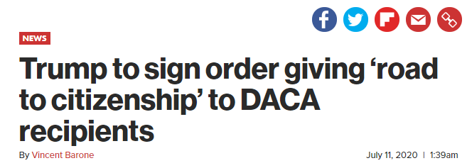 川普政府是历届美政府对移民限制最严格的。但是周五川普总统居然表示,他将在未来几周内签署一项关于移民的行政令,为非法入境美国的儿童提供公民身份的途径。看到这则报道,惊呆了!这可不像是川普的作风啊。