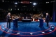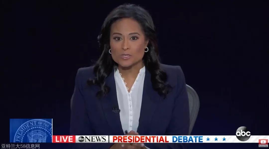 辩论准时开始,主持人就位,特朗普和拜登入场。
