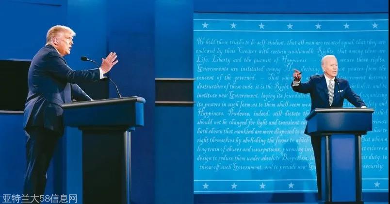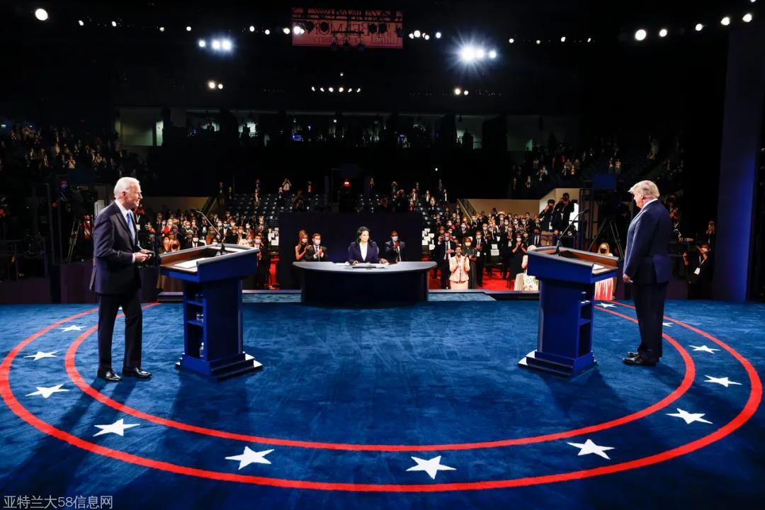 美国现任总统特朗普和其竞选对手拜登在美国时间10月22日晚再度同台,进行大选前最后一场电视辩论。