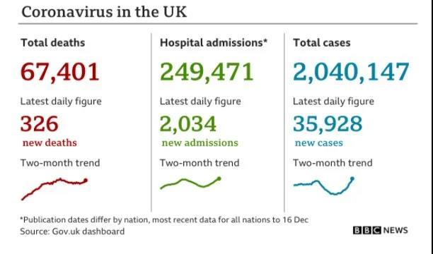 截止12月20日,英国新增确诊病例35928例,约为一周前的两倍,这一迅速扩散的变种病毒被命名为“ VUI-202012/01”。
